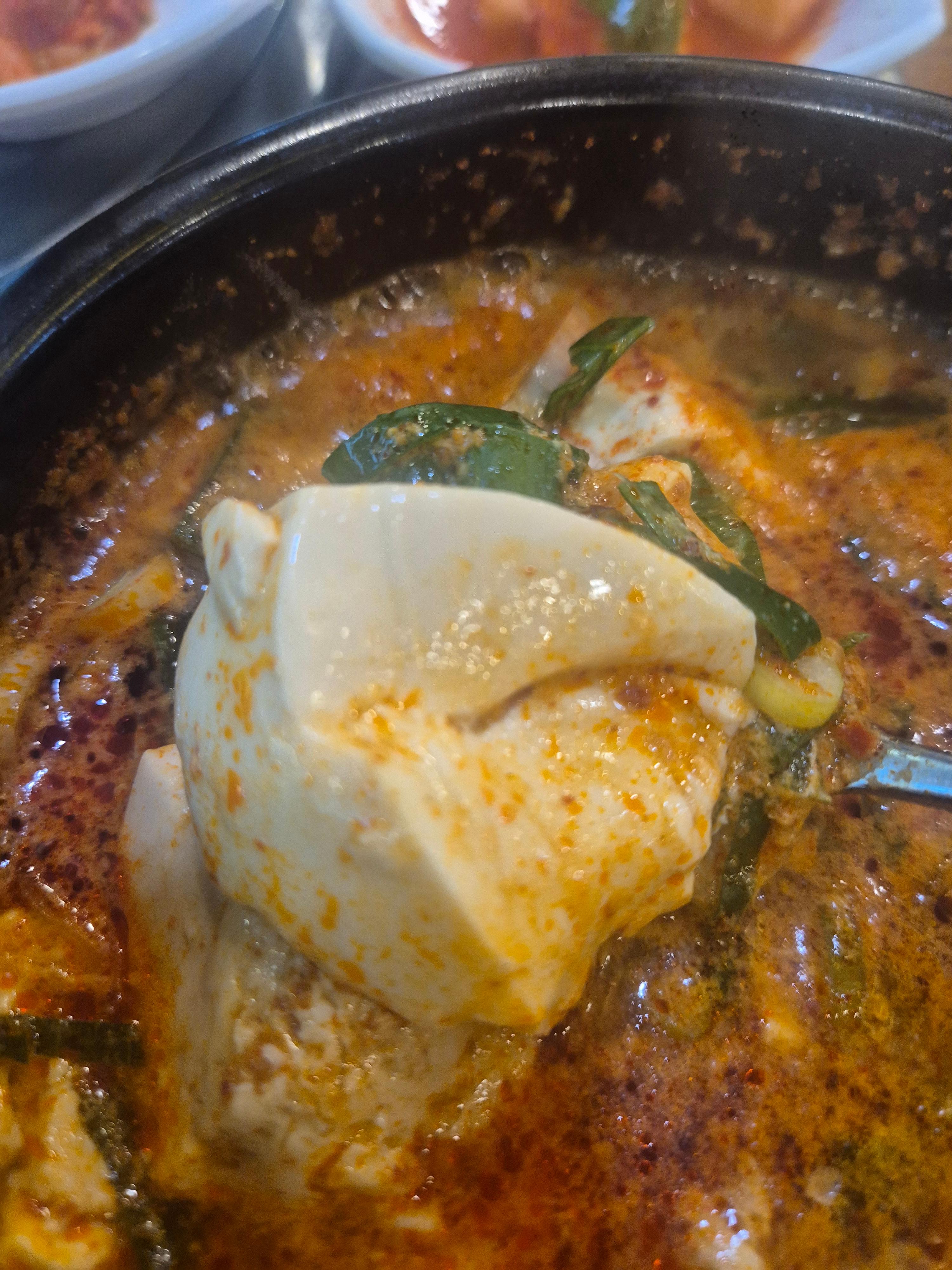 순두부 양은 넉넉하지만 계란 하나가 다 안 들어감(순두부찌개는 계란 하나 올려져 있는 게 핵심인데 계란 거의 없음)