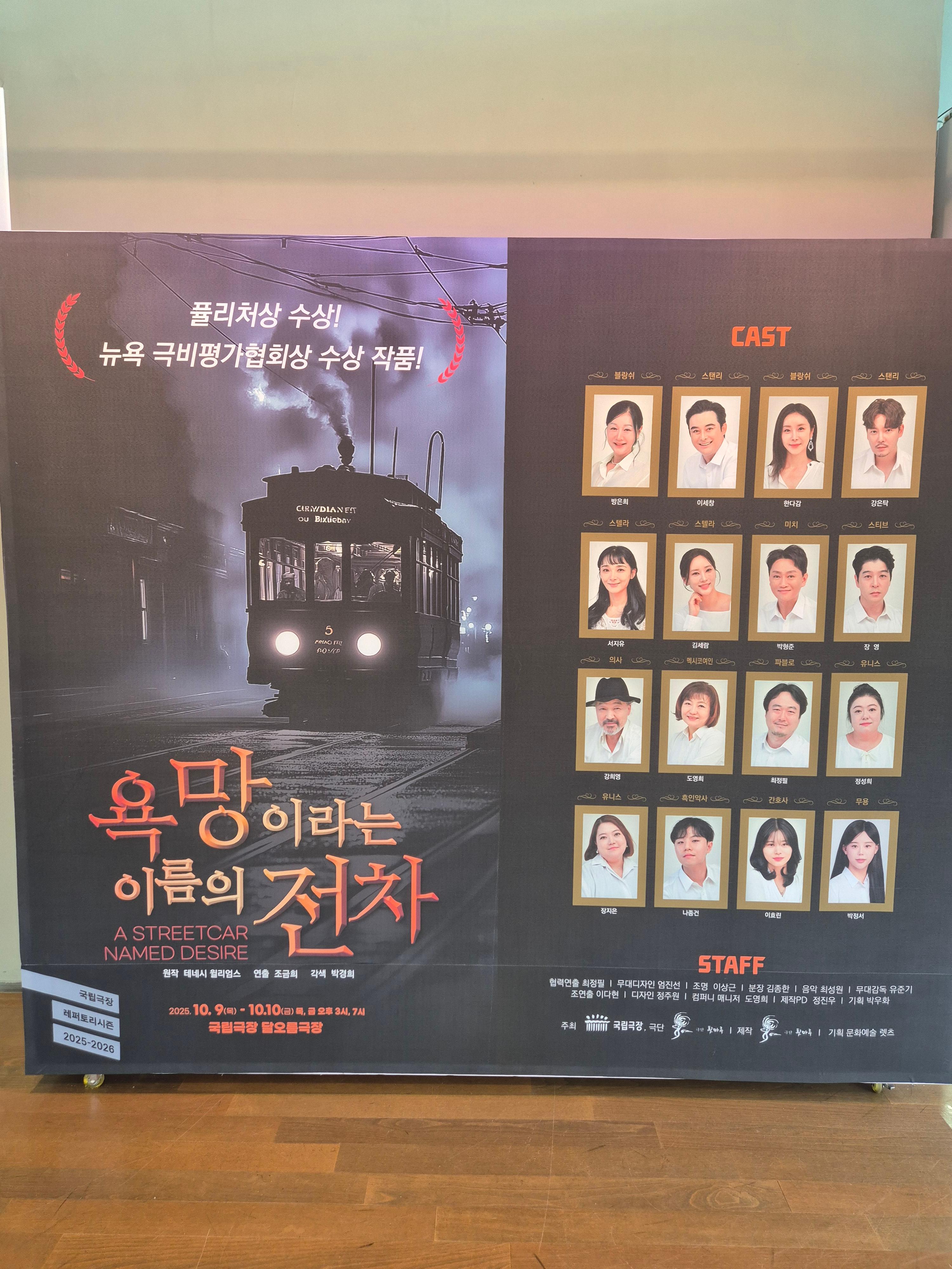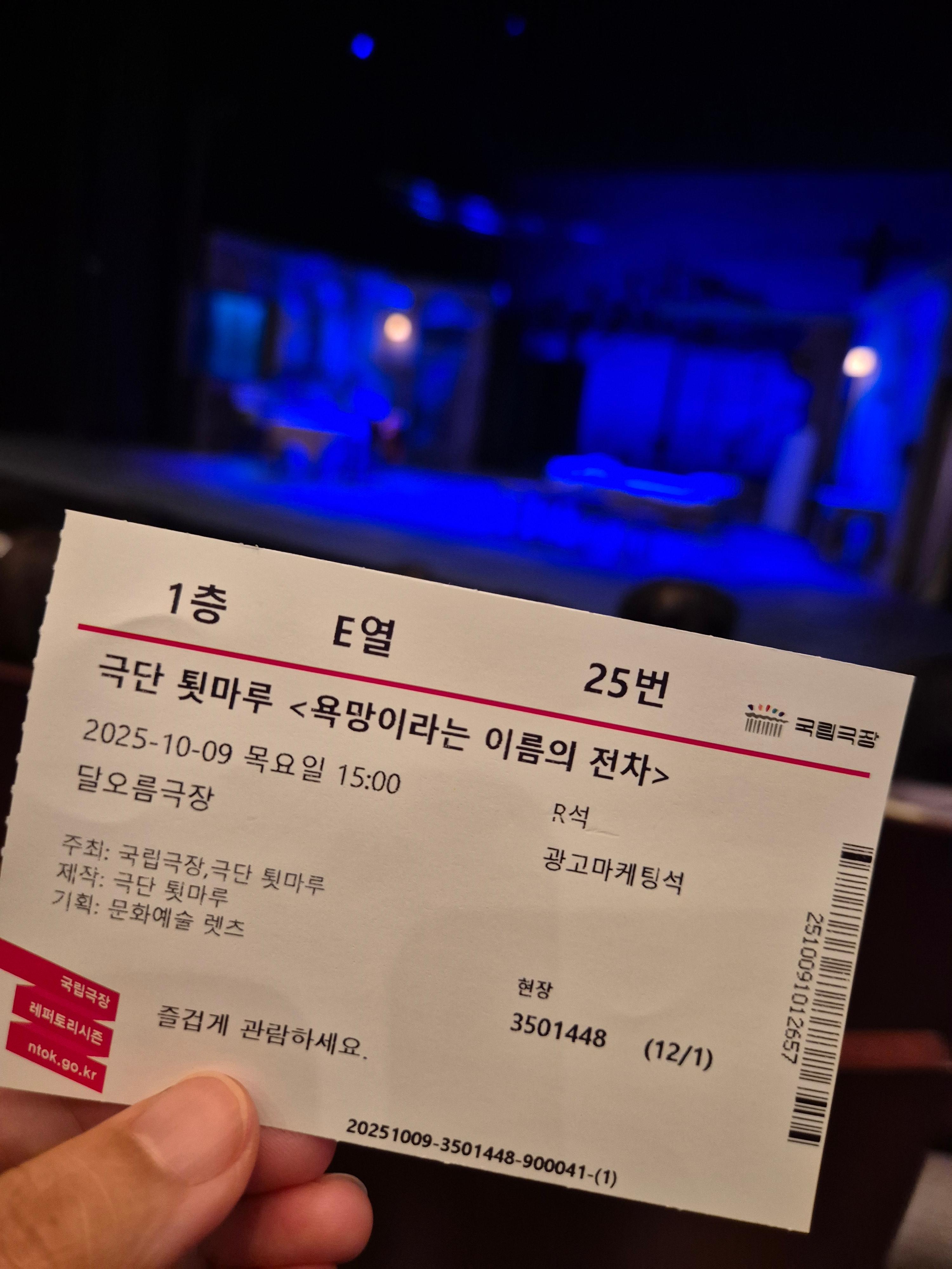 오늘은 국립극장 달오름극장에서 연극 < 욕망이라는 이름의 전차>를 보고 왔어요