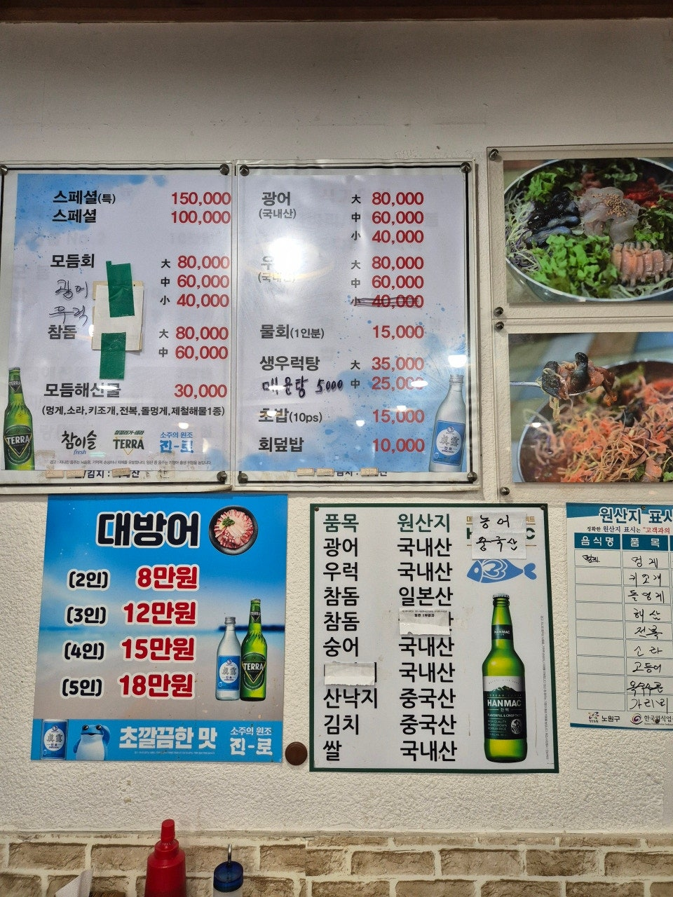 메뉴판에 나오는 스페셜메뉴는 모듬회에 물회가 추가됩니다.