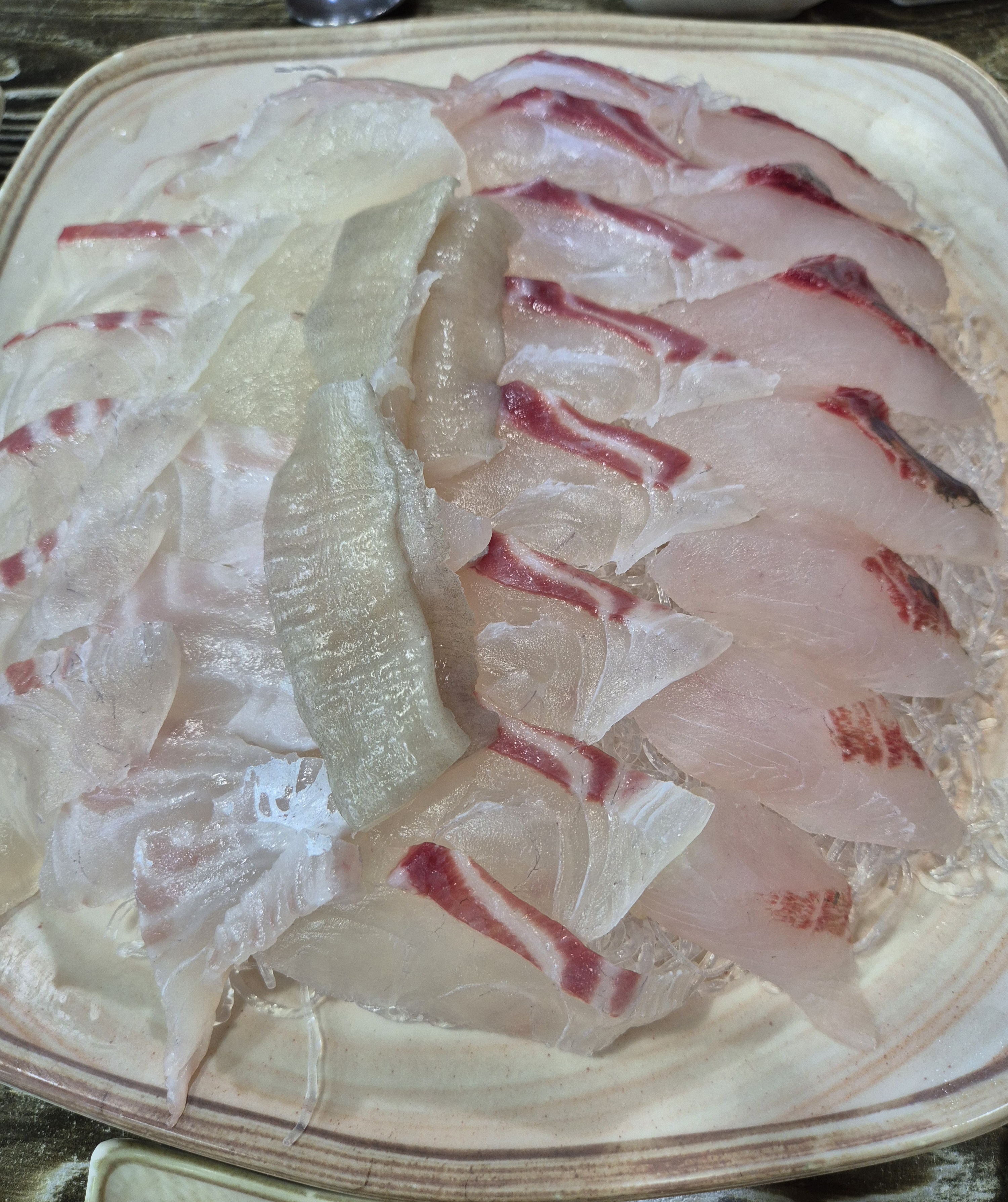 그리고 메인 회가 나와요. 구성은 광어, 돔등 다양하게 준비되어 있었고, 무엇보다 회가 정말 신선해요. 두툼하게 썰린 회 덕분에 씹는 식감도 최고입니다.
