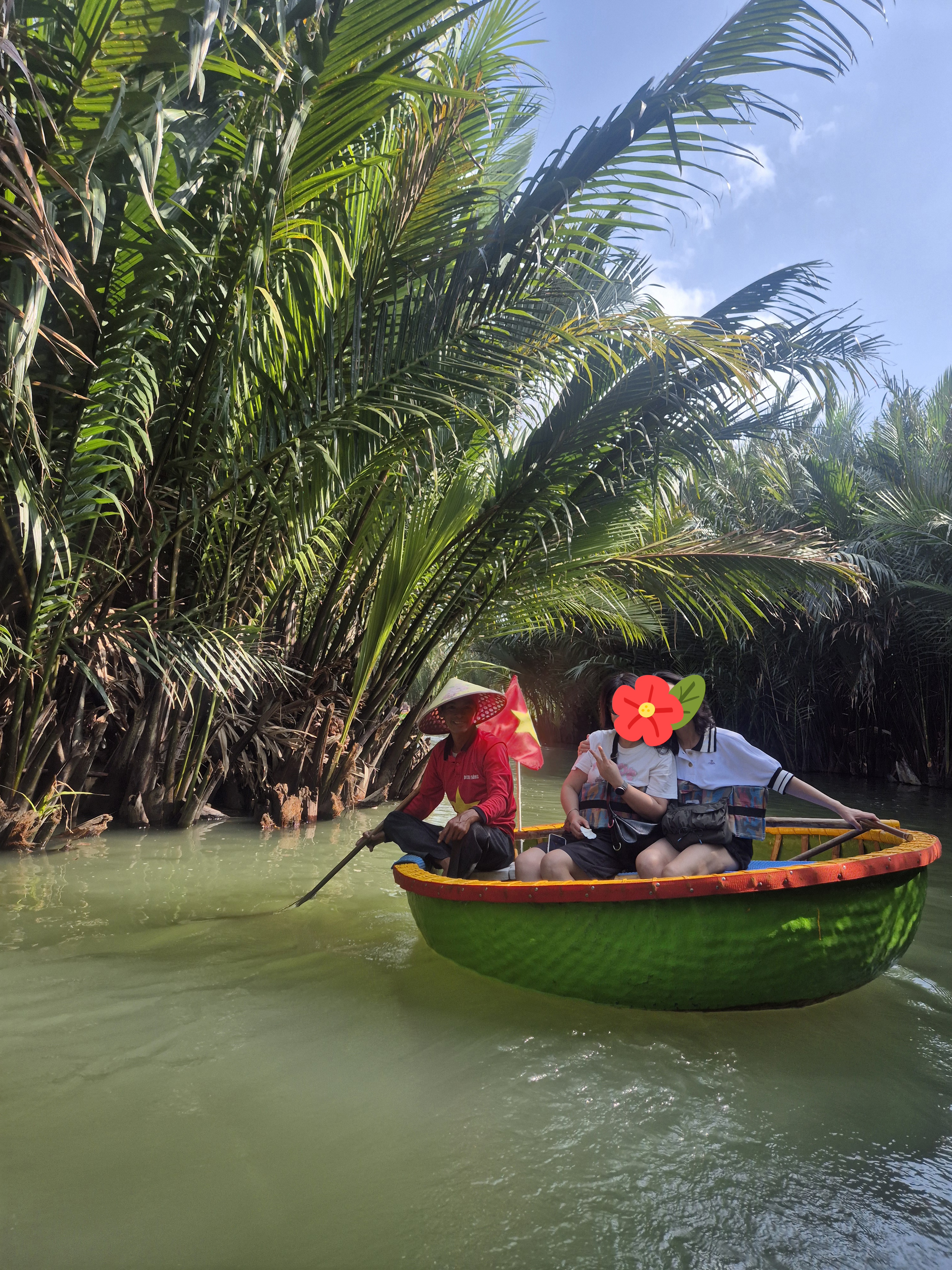 강 위를 둥근 배를 타고 돌면서 현지 뱃사공이 노를 저어주는데,