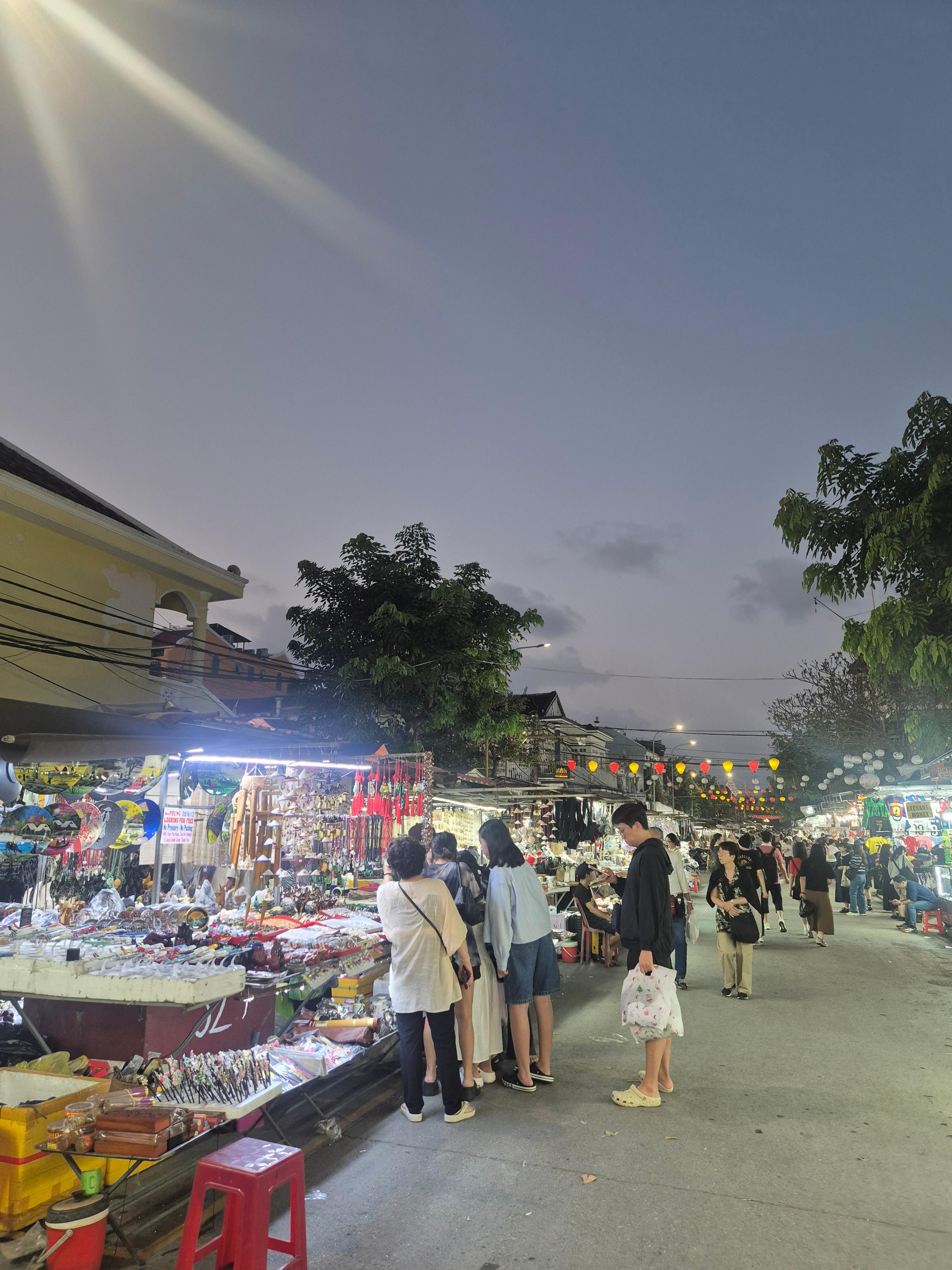 기념품, 망고주스, 길거리 음식, 등불 가게까지
