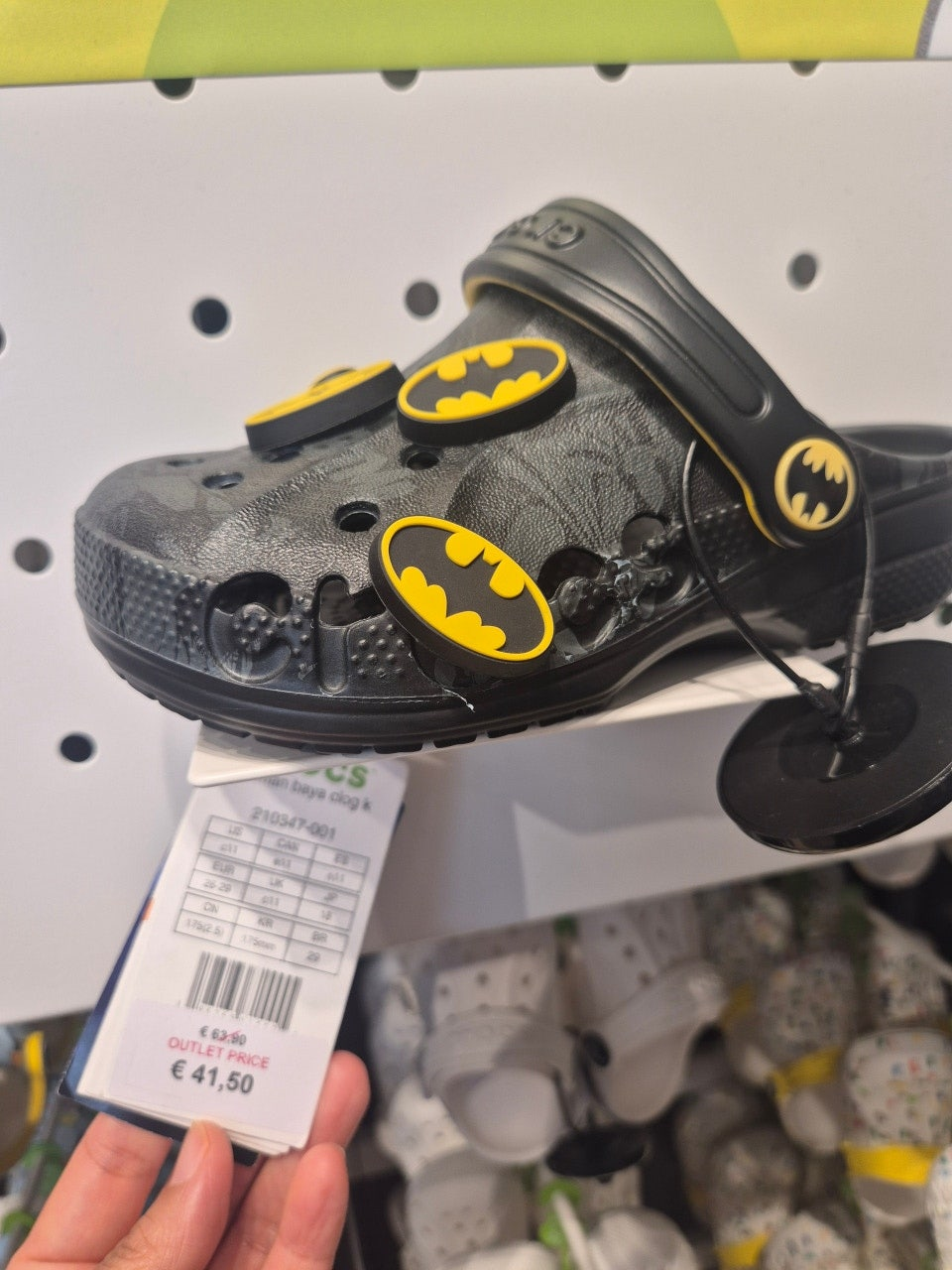 다양한 디자인의 크록스를 판매하고 있어요. 특히 깜찍하고 화려한 디자인의 어린이 크록스가 정말 많이 있었어요.