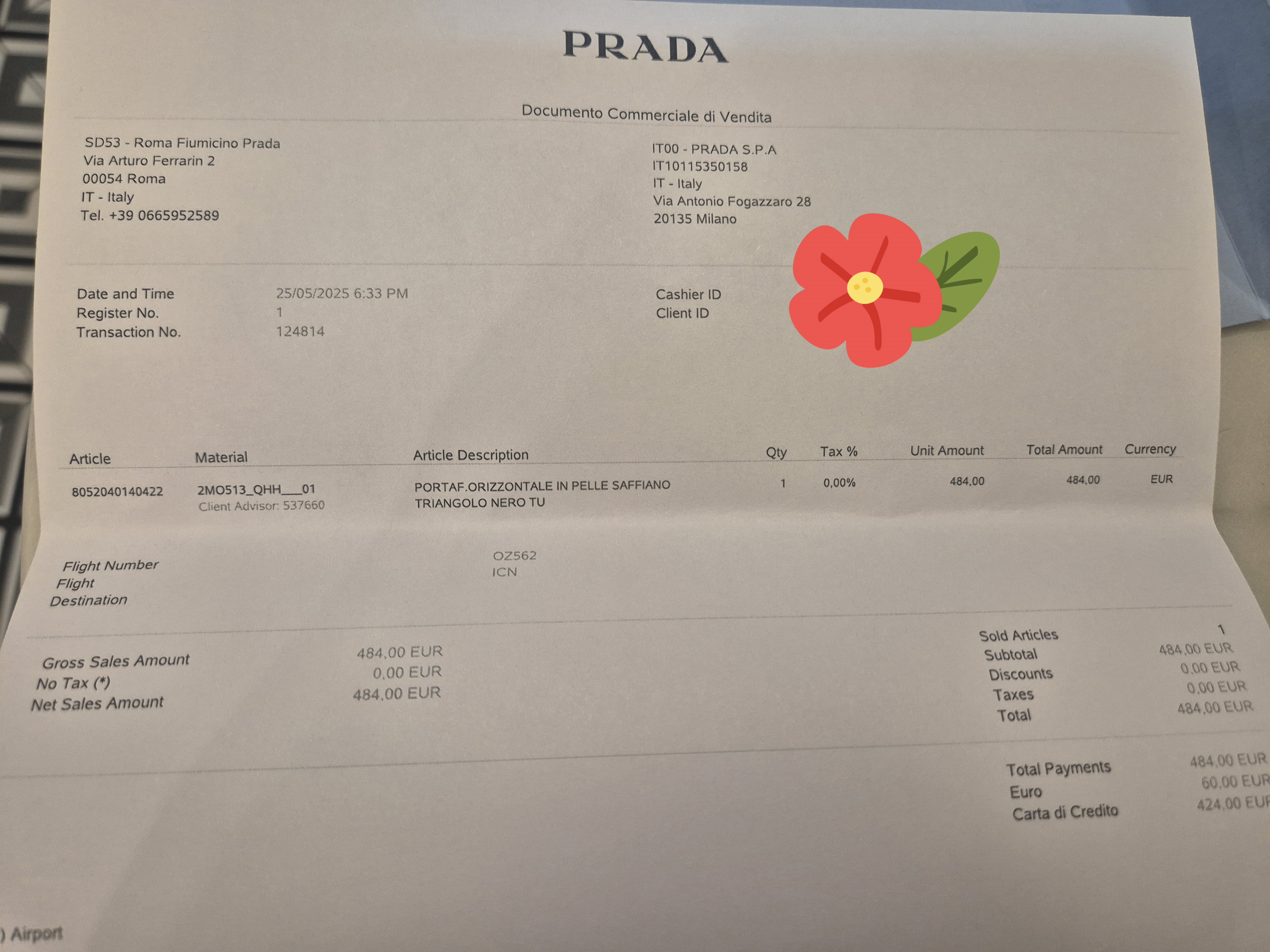 그럼 로마 공항 면세점 프라다 매장으로 가볼까요?