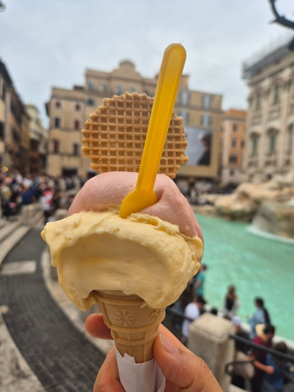 다음은 트레비 분수 역시 가장 많은 사람이 있네요. 여행사에서 제공해 주는 젤라토 아이스크림 들고 기념샷. 젤라토를 맛있게 먹으면서 사진도 찍고 뒤돌아서 동전도 던져요. 가까이서 동전을 던지려면 또 줄을 오래서야 합니다. 저는 집에서 동전을 미리 준비해 갔어요. 동전이 없는 분들이 의외로 많이 있고 1유로를 던지기에는 좀 아깝더라고요. 저는 로마여행을 20대 때 배낭여행 한 적이 있습니다. 그때 트레비 분수에 와서 동전을 던졌는데 정말 소원이 이루어졌네요. 다시 이 아름다운 로마를 오고 싶으면 꼭 동전을 던지세요. 아름다운 분수를 보면 기분이 좋아져요. 엄마도 신이 나서 동전을 던집니다.
