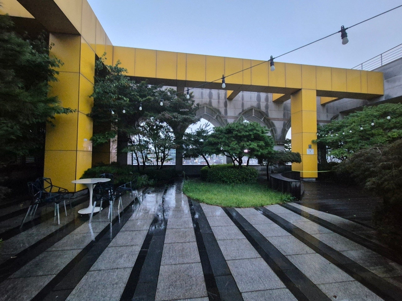 그리고 일찍 오셨다면 9층 옥상에 올라가서 공연전에 출출함을 채워줄 간단한 간식을 압구정 시내를 배경 삼아 먹을 수 있는 야외공원 같은 곳이 있답니다.
