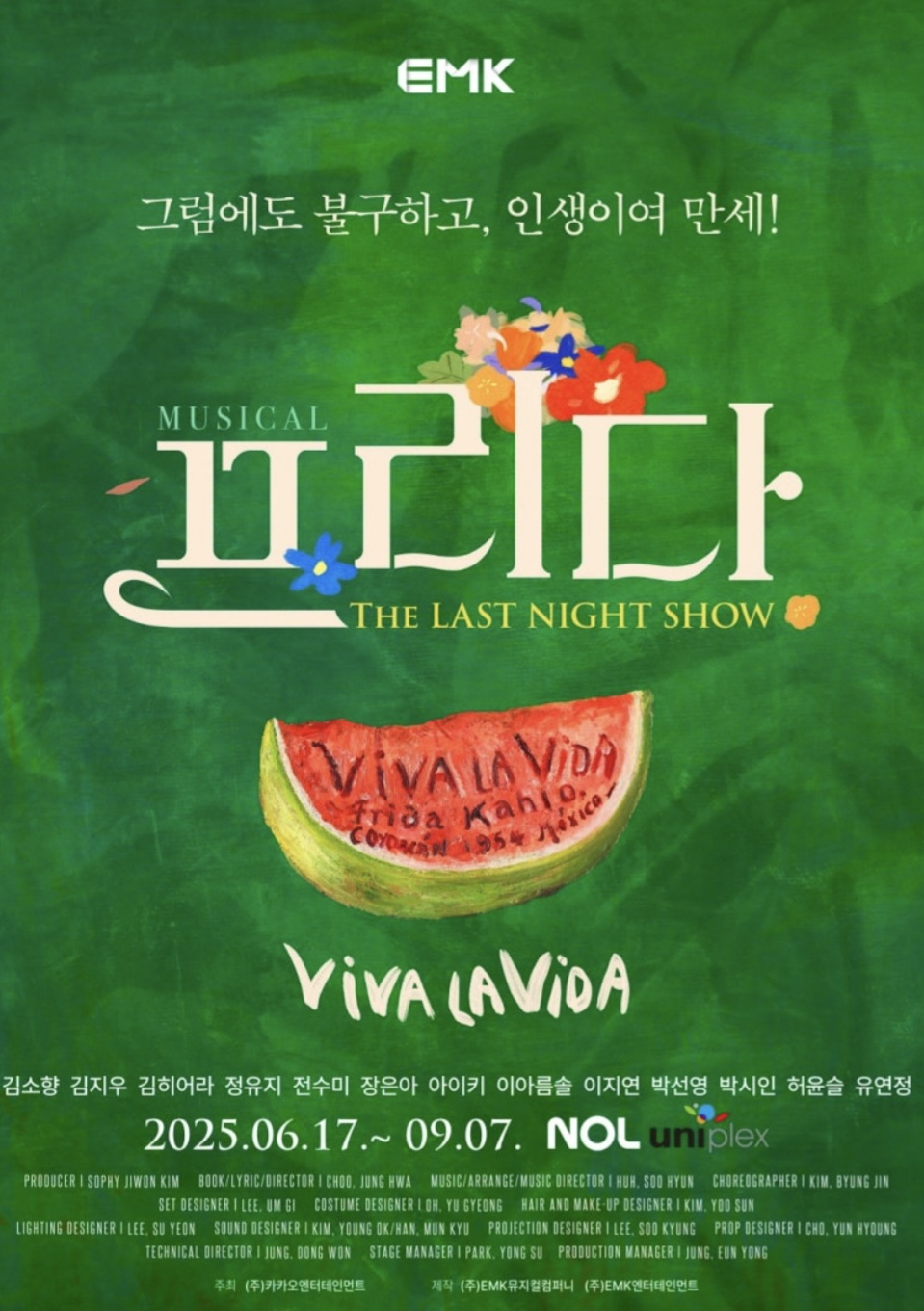 그녀의 예술, 사랑, 고통, 그리고 투쟁의 이야기를 진한 감정선과 독창적인 무대로 풀어내 인상 깊었습니다.