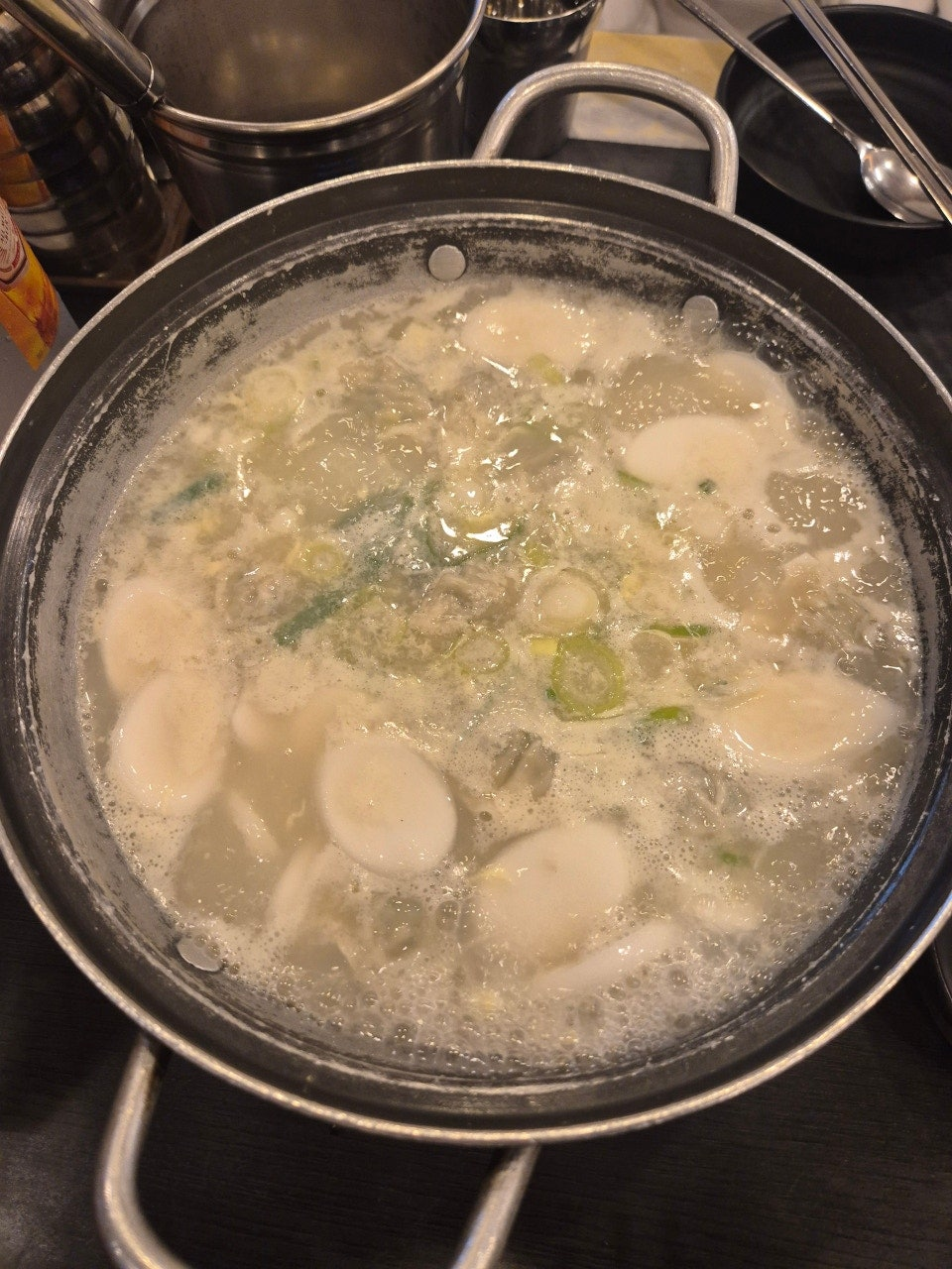 저희는 3명인데 서울3대족발 족세트(대)를 주문했어요. 세트메뉴는 미니쟁반국수와 음료수가 나온답니다. 주문하자 마자 떡만두국을 올려 줍니다. 예전에 방문했었던 동생 말로는 불족이 매워서 떡만두국 국물과 같이 먹으면 좋다고 하네요.