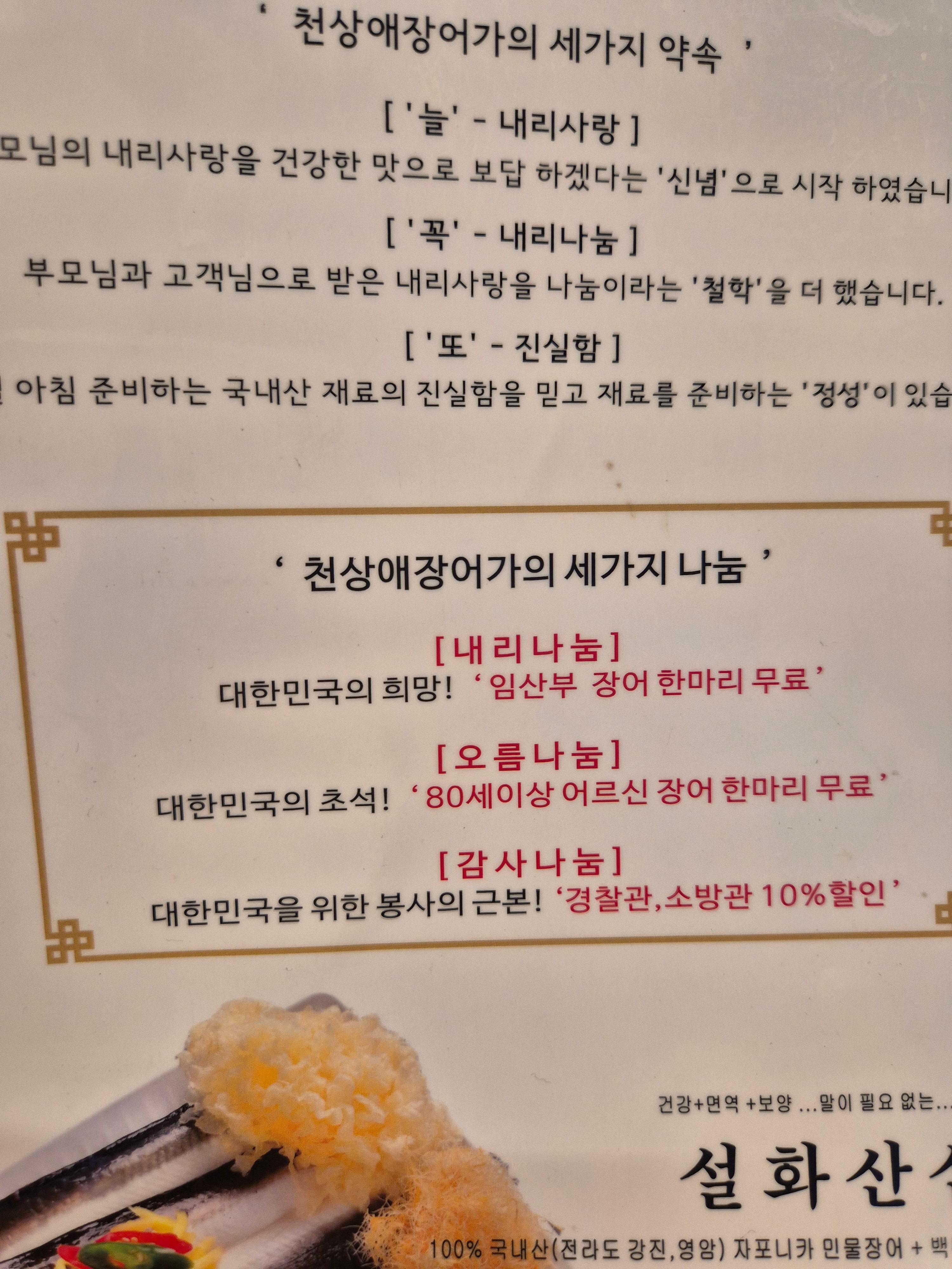 - 오름나눔: 80세 이상 어르신 장어 한 마리 무료