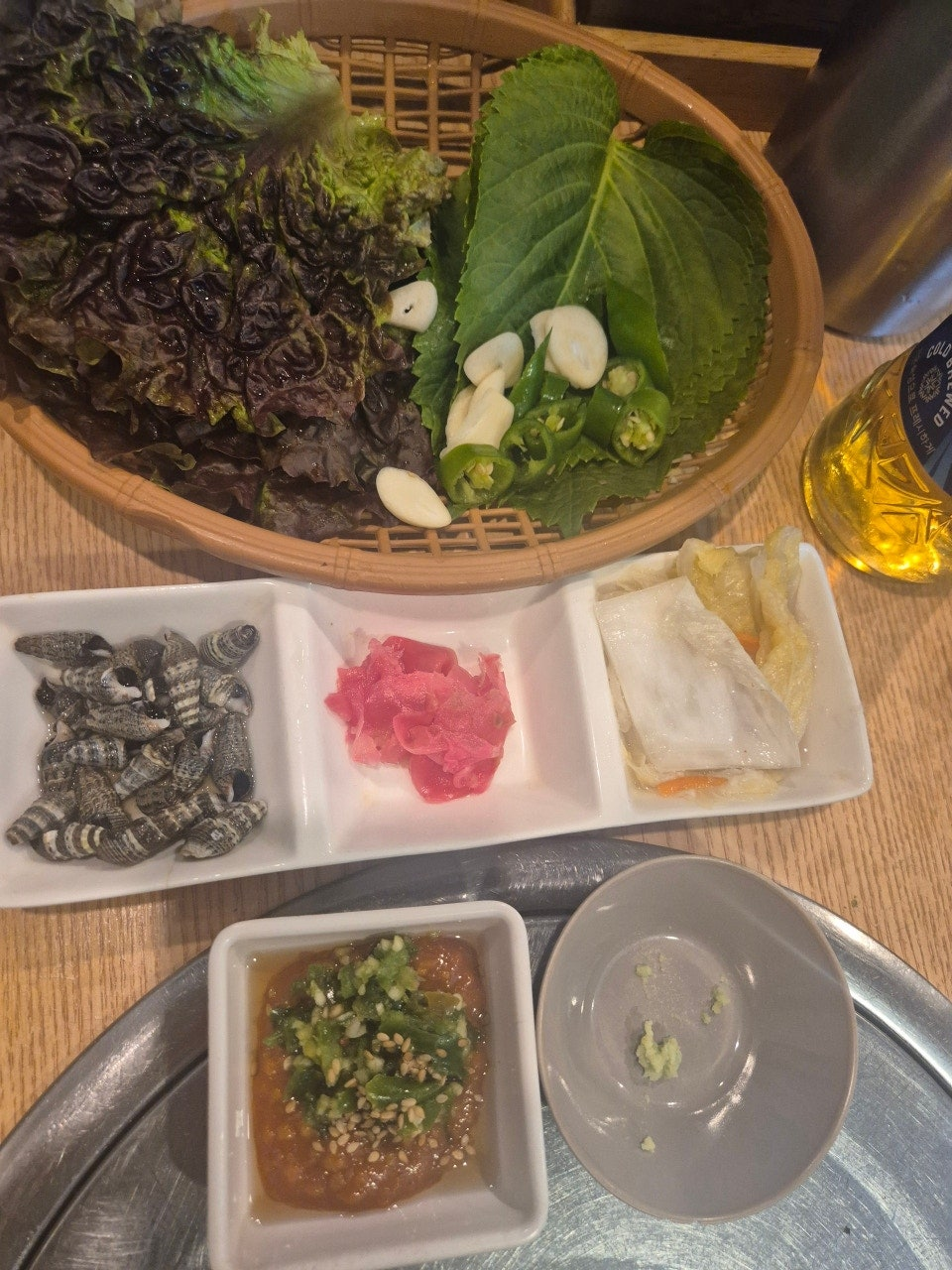 광어, 도미,연어, 멍게, 가리비 찜, 전복 내장이 올려진 전복찜, 소라, 간장새우, 오징어 말이 같은 것, 그리고 제가 제일 좋아하는 참치 진짜 완벽한 모듬회 입니다. 장사가 워낙 잘되는 곳이니 회는 싱싱합니다. 계절별로 나오는 회가 조금씩 바뀌네요. 가성비 최고입니다. 술이 술술 들어가네요.