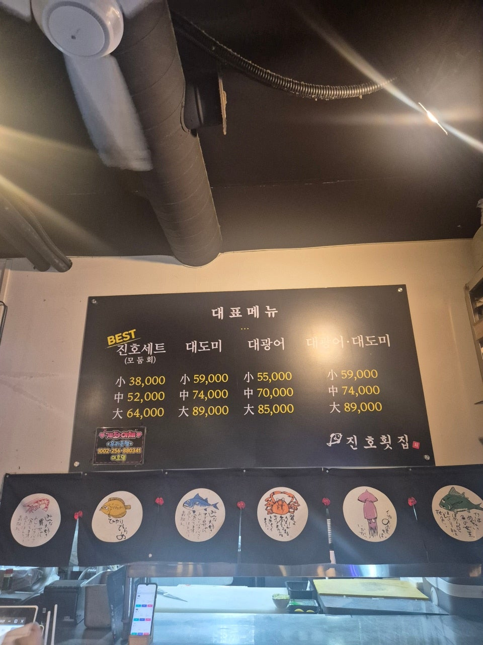 진호횟집은 메뉴판에 다양한 메뉴가 있지만 어차피 선택은 두명이면 소, 세명이면 중 시키면 됩니다.