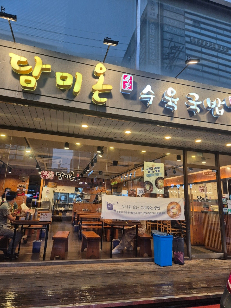 보이는 것으로 광림아트센터 바로 근처에 유일하게 남은 곳이 김밥집 두 곳 유정낙지 그리고 가끔 방문했던 담미온이 아직 그대로 있네요. 공연 전에는 원래 자극적인 거 잘 안 먹으려고 하지만 이날은 비가 내려서 왠지 얼큰한 국밥이 먹고 싶었어요.