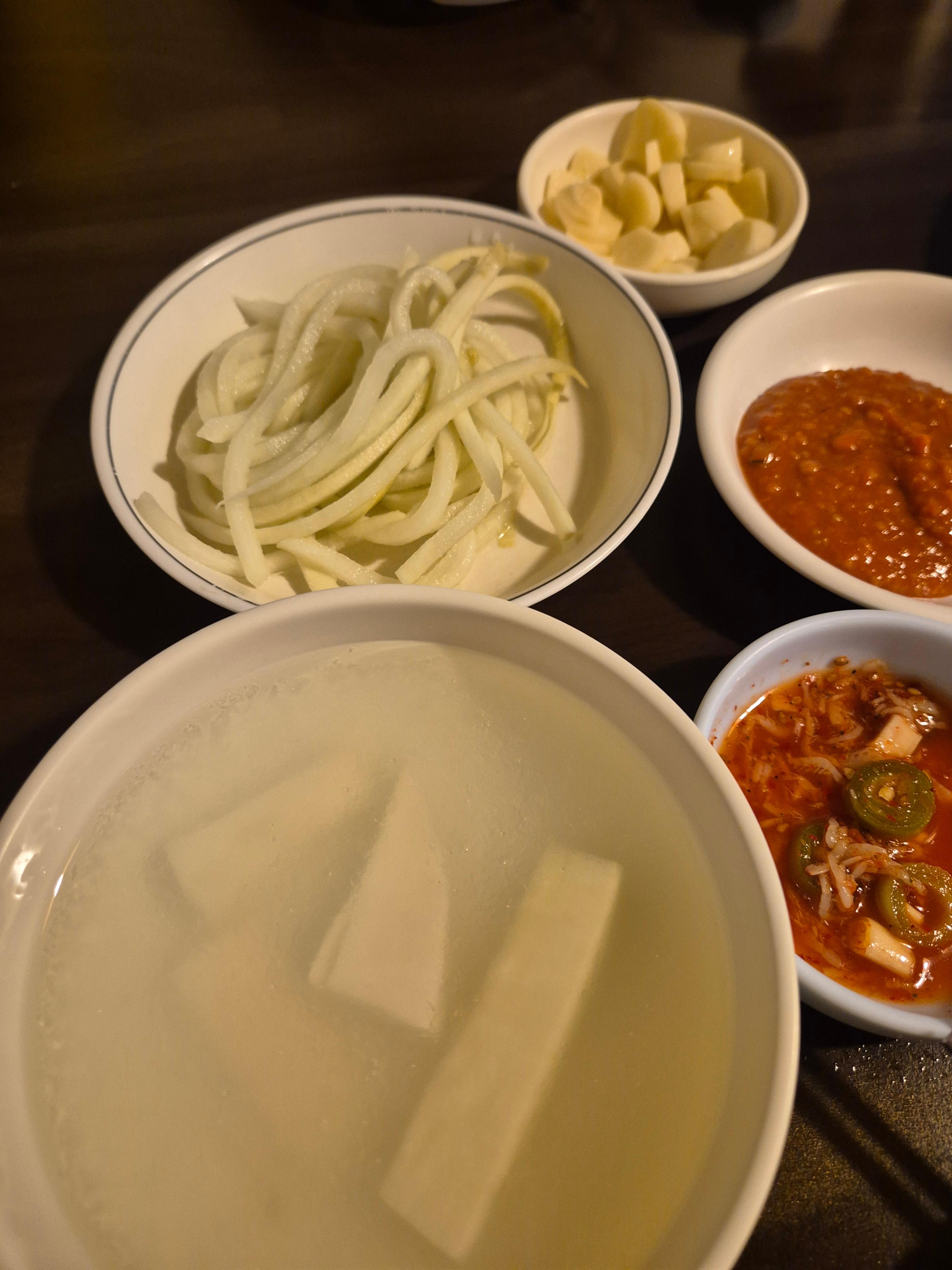 특히 다른 곳에서는 제공되지 않는 쪽파가 쌈채소와 함께 나오는데 이게 참 별미입니다.