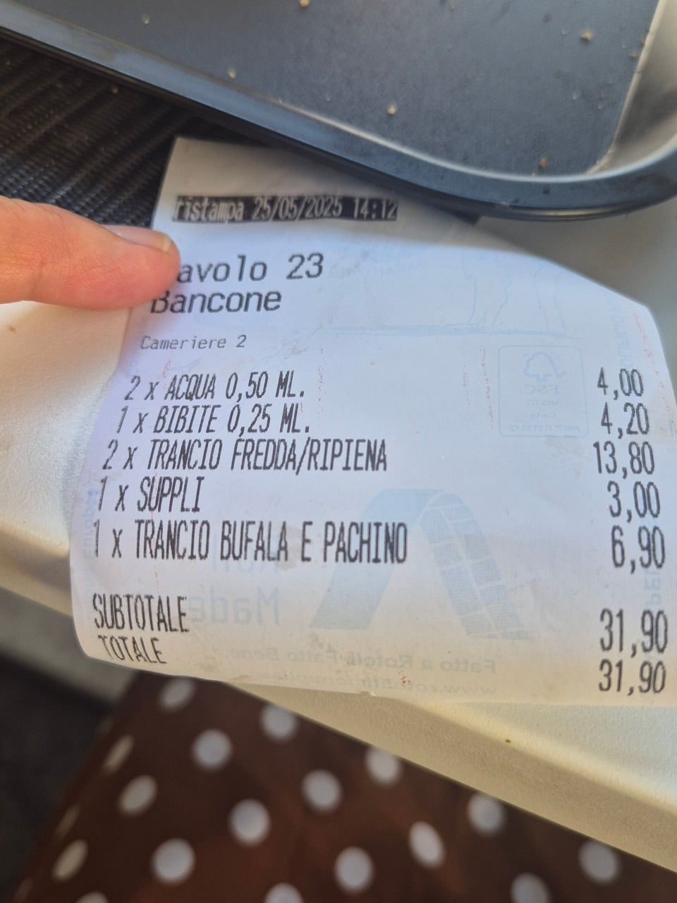 공항 가기 전 이탈리아에서 마지막 식사입니다.