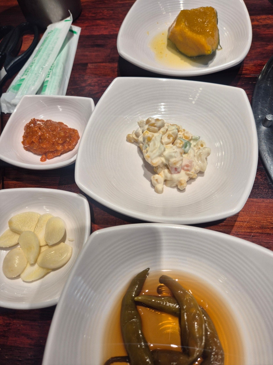 기본 찬 구성은 심플하지만 하나하나 맛이 깔끔해서 고기와 잘 어울렸어요.