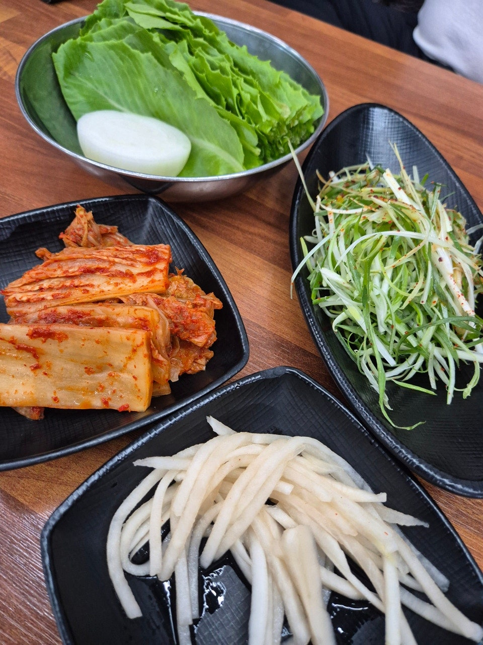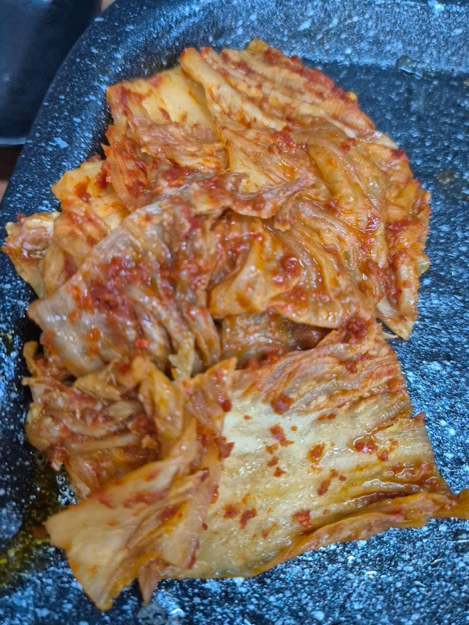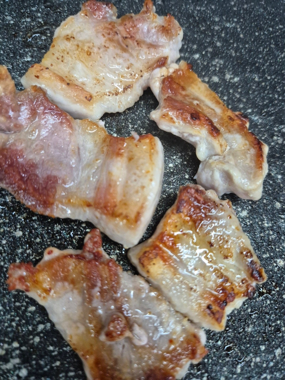 삼겹살 기름에 김치에 더 맛있어지고 있어요.