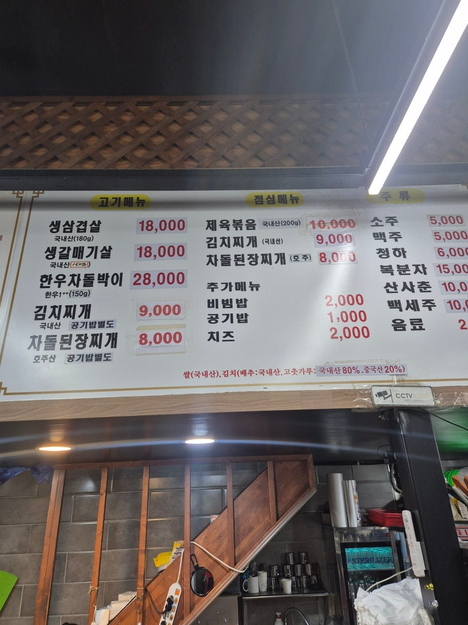 👉 고기 메뉴는 국내산 위주로, 특히 차돌박이는 가격대는 조금 있지만 그만큼 질 좋은 고기를 맛볼 수 있습니다.
