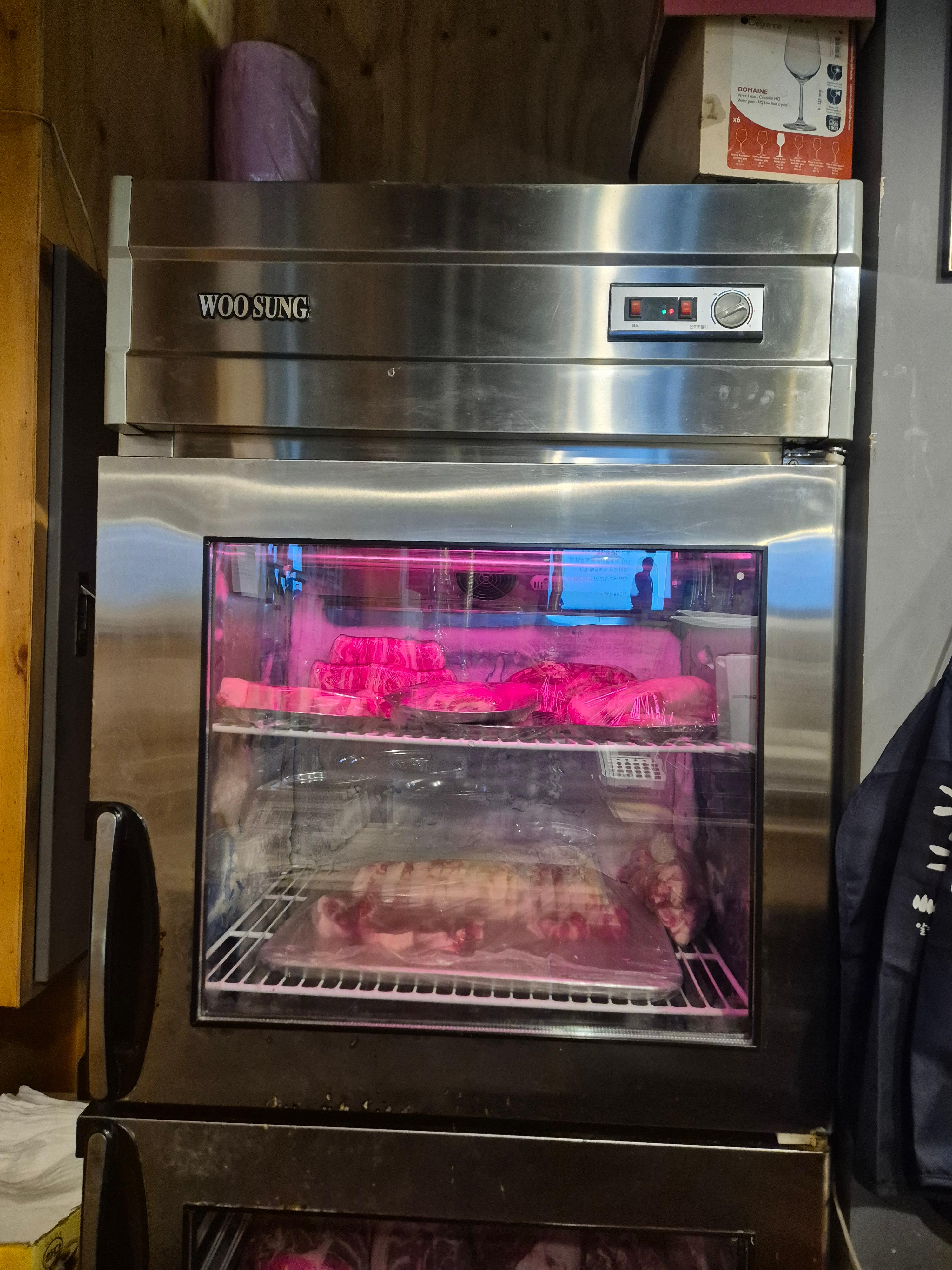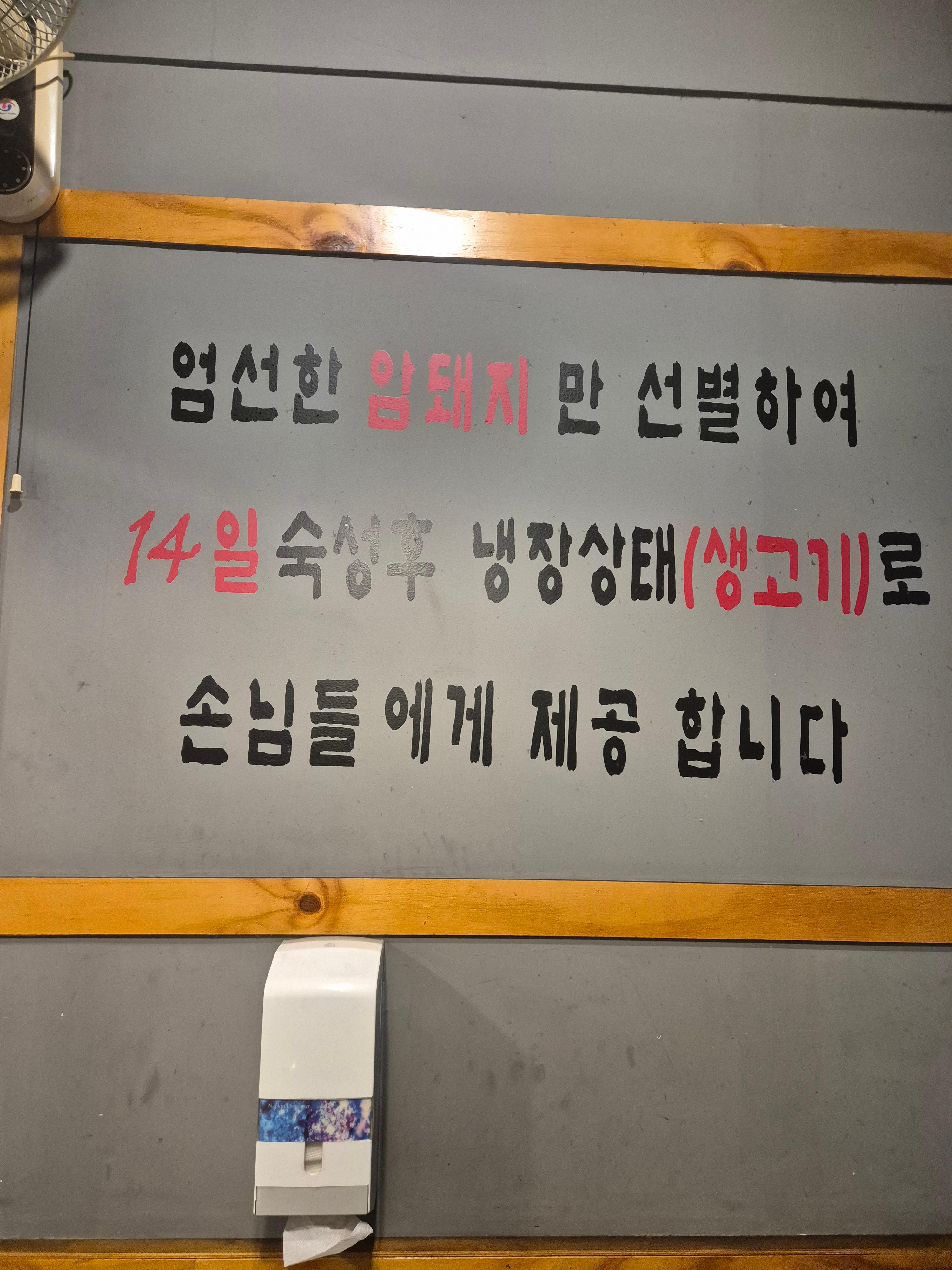 참고로 이곳은 “암돼지를 14일 숙성”해서 나오는 고깃집이랍니다.