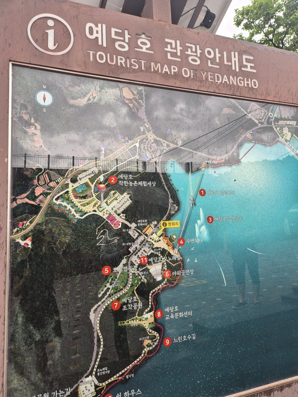 우리가 방문했을 때는 아쉽게도 비가 많이 내려서 운행을 하지 않고 있었어요. 그리고 출렁다리와 바로 연결되는 느린 호수길은 호수를 바라보며 걸으면서 힐링하기에 좋은 곳이에요.