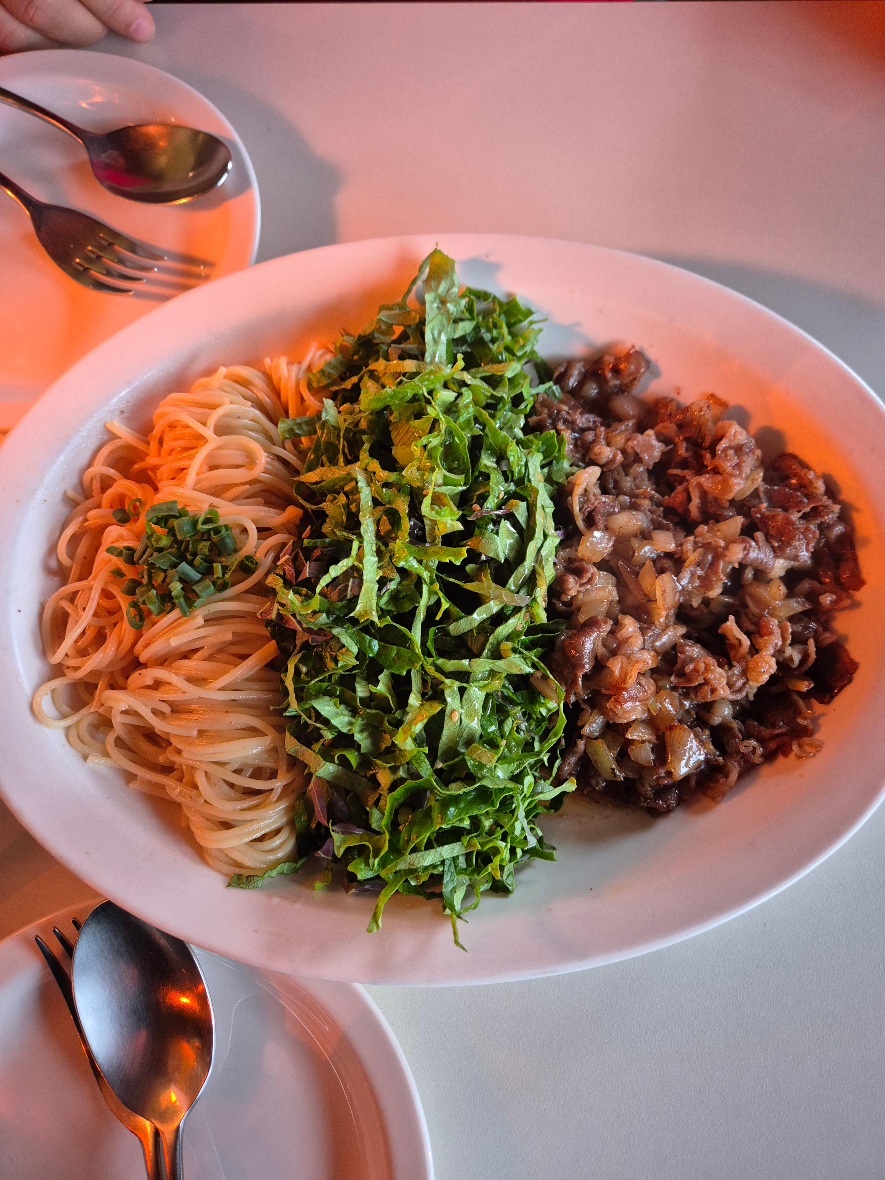 비벼주세요. 파스타에 불고기를 올려서 먹은 느낌. 양도 푸짐하고 비쥬얼도 좋아요.