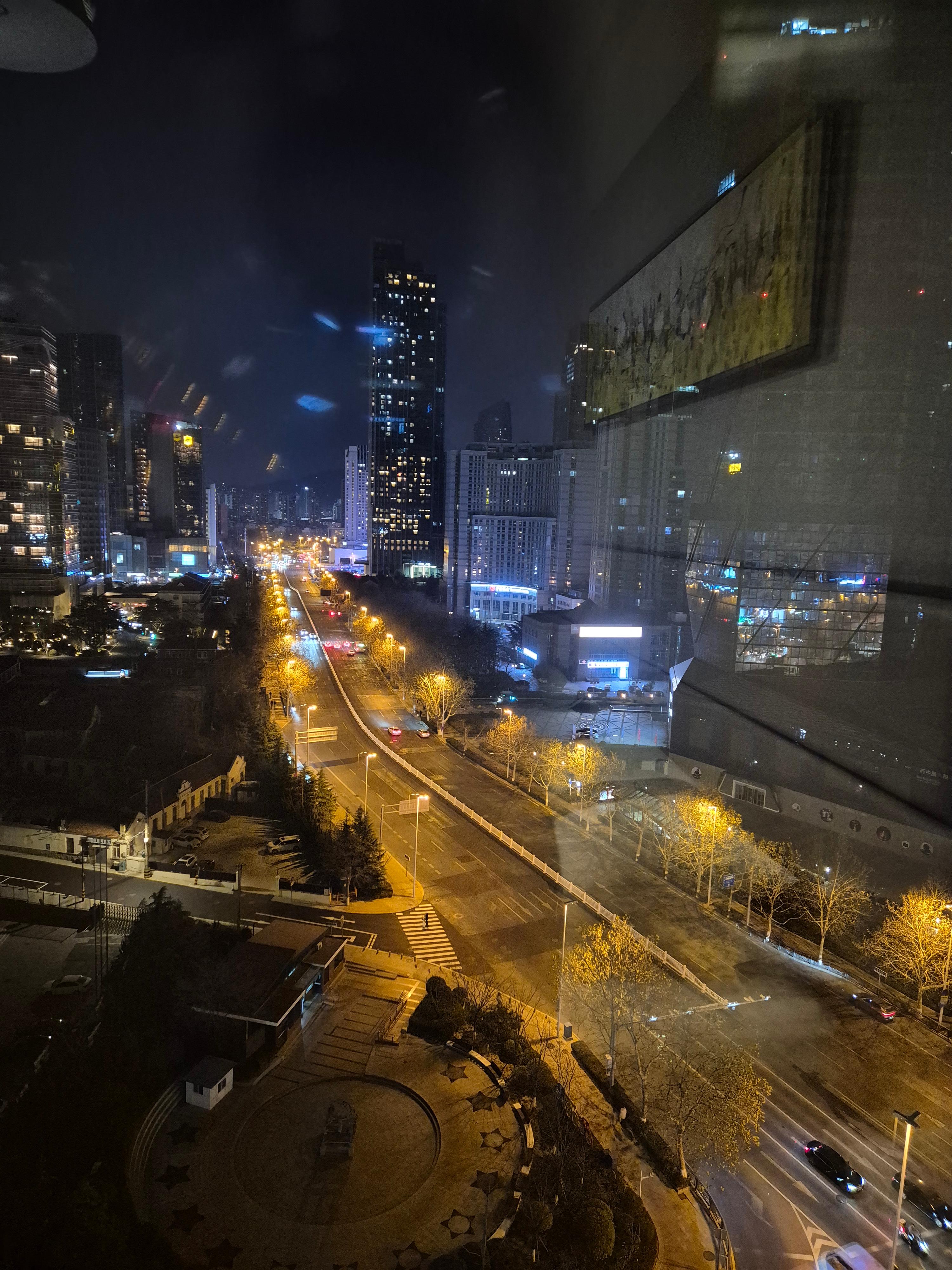 호텔에서 바라보는 마지막 밤입니다. 야시장에서 사 온 족발과 소시지와 함께 맥주 한잔하면서 하루를 마무리하네요.