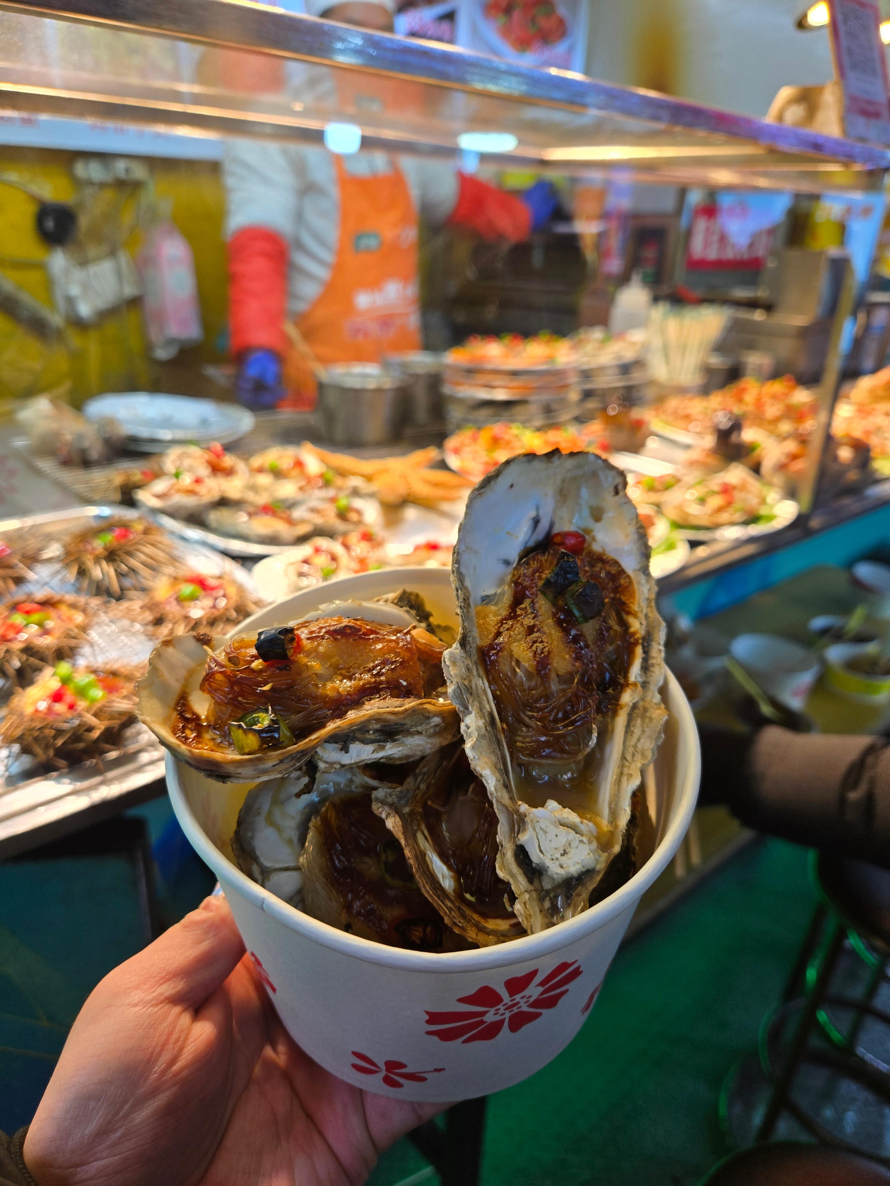 - 신선한 해산물 – 해산물로 유명한 지역답게 간단하게 먹을 수 있는 해산물이 많아요. 저는 대왕 굴찜을 먹었습니다