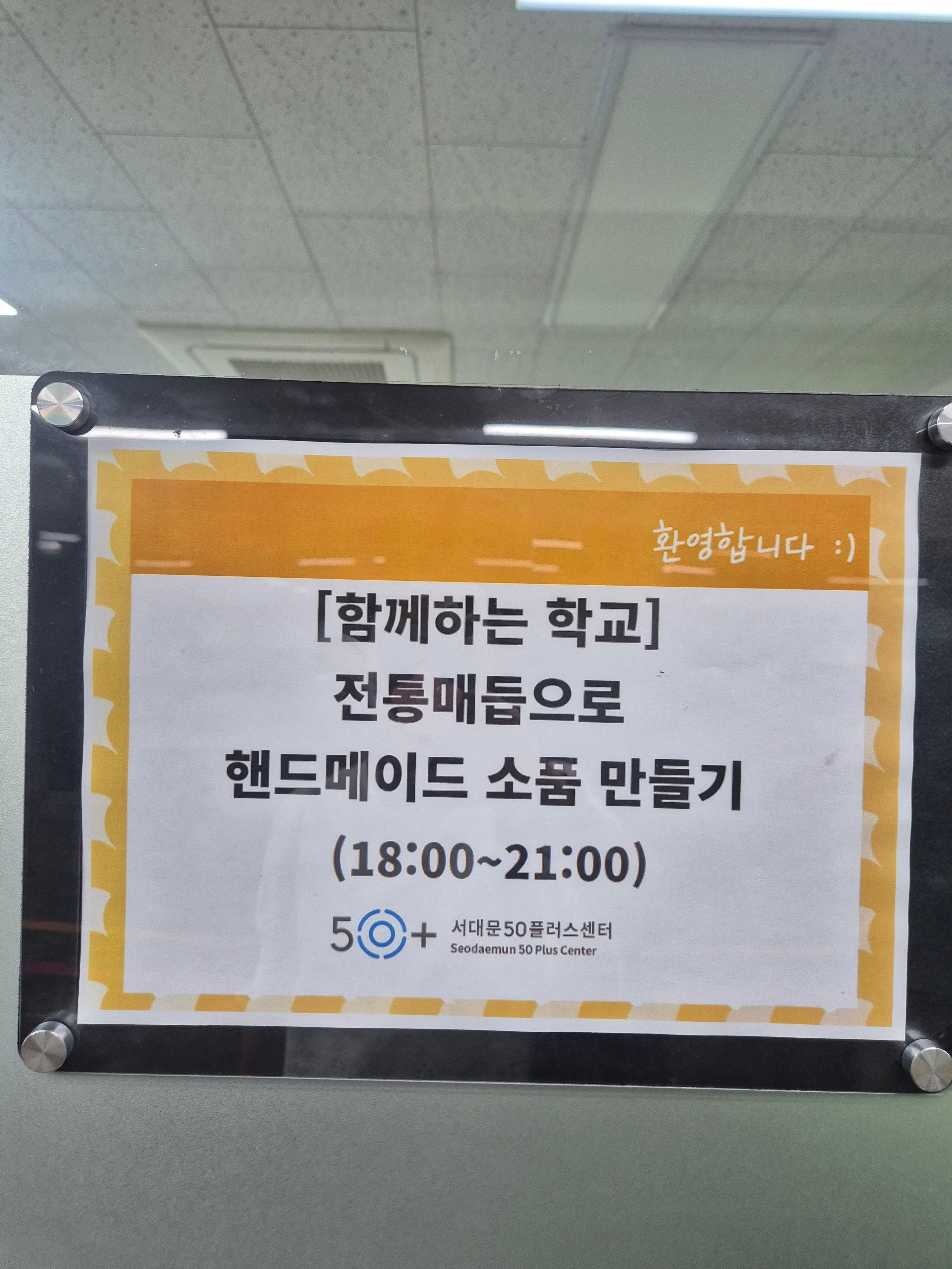 관심은 많았지만 매듭을 직접 배울 수 있는 곳은 많지 않아요. 저는 이번에 서대문 50 플러스까지 가서 배웠답니다.