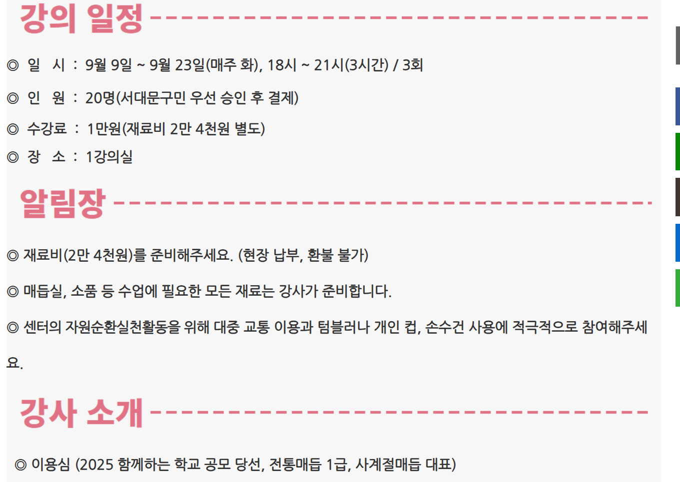 ✔ 9월 9일부터 23일까지 매주 화요일 저녁 3시간씩 진행됐어요