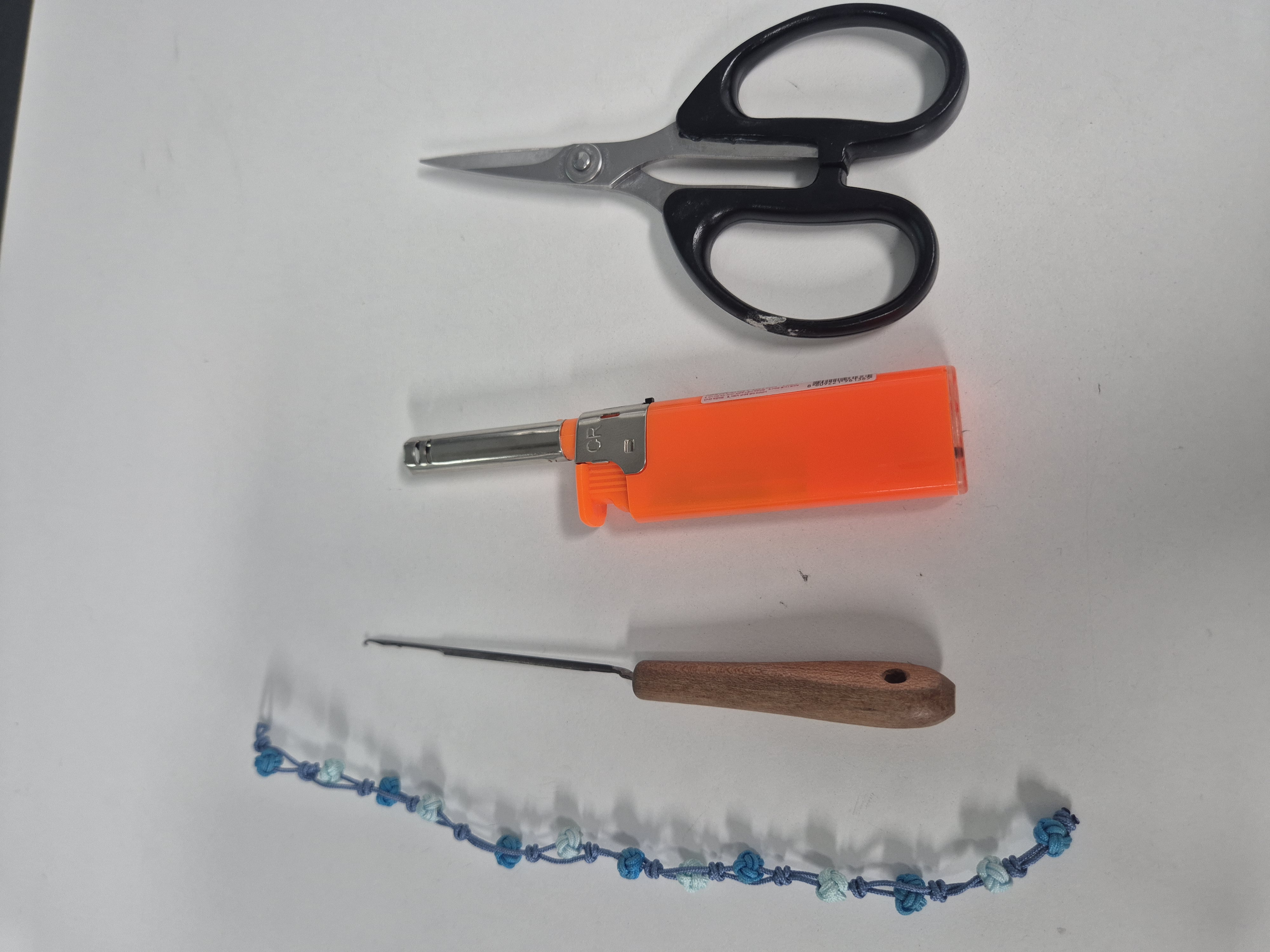 강사님이 알려주신 방법대로 끈을 반으로 접어 원을 만들고, 교차한 부분을 돌려 묶는 과정을 반복하다 보니, 매듭이 점점 단단하게 고정되면서 심플하지만 세련된 모양이 완성되더라고요.