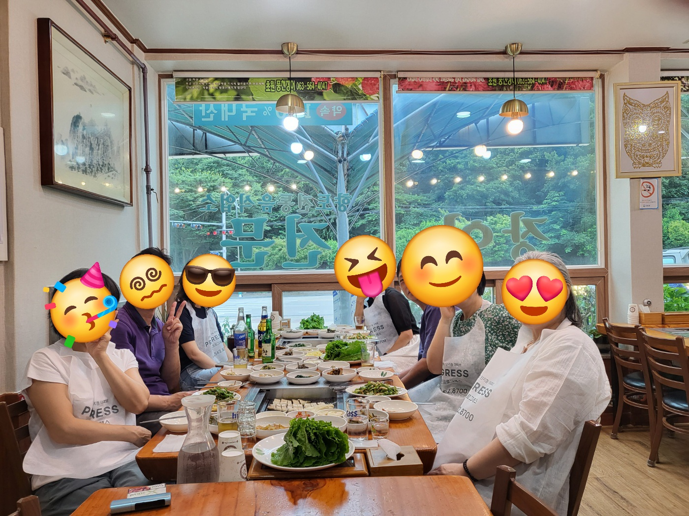 직접 구워 먹는 장어에 소주 한잔, 너무 많이 걸어서 정말 배고팠어요. 고창 장어마을에 가면 길에 즐비한게 장어식당이니 숙소 근처에서 먹는 것이 가장 편한 것 같아요. 단체사진 찍고 먹느라 장어는 막상 못 찍었네요ㅠㅠ. 여행의 맛이 뿜뿜~ 가장 행복한 순간🍶