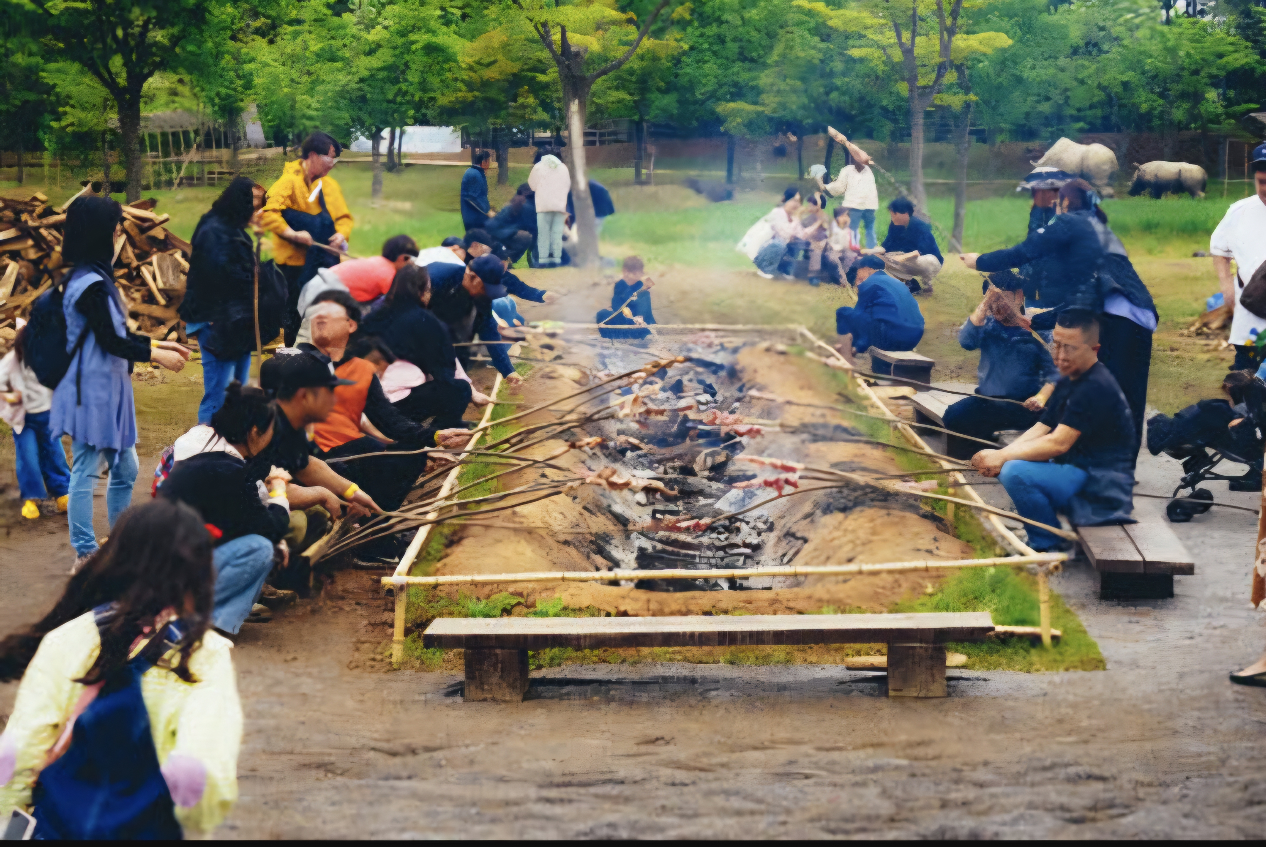 <3> 결제 후 꼬치를 받고 구이터에서 체험을 즐긴다