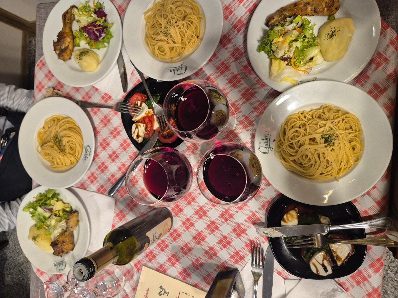 로마에서 이틀 동안 갔던 식당입니다. 첫날은 한식 둘째 날은 현지식으로 나왔네요. 알리오 올리오 스파게티와 닭다리와 샐러드 나왔습니다. 맛은 좀 아쉽지만 숙소하고 걸어서 갈 수 있는 곳이고 음료나 와인 등을 상대적으로 저렴하게 판매하고 다른 메뉴들도 주문가능합니다. 이렇게 본격적인 여행 첫 여정이 마무리됩니다.