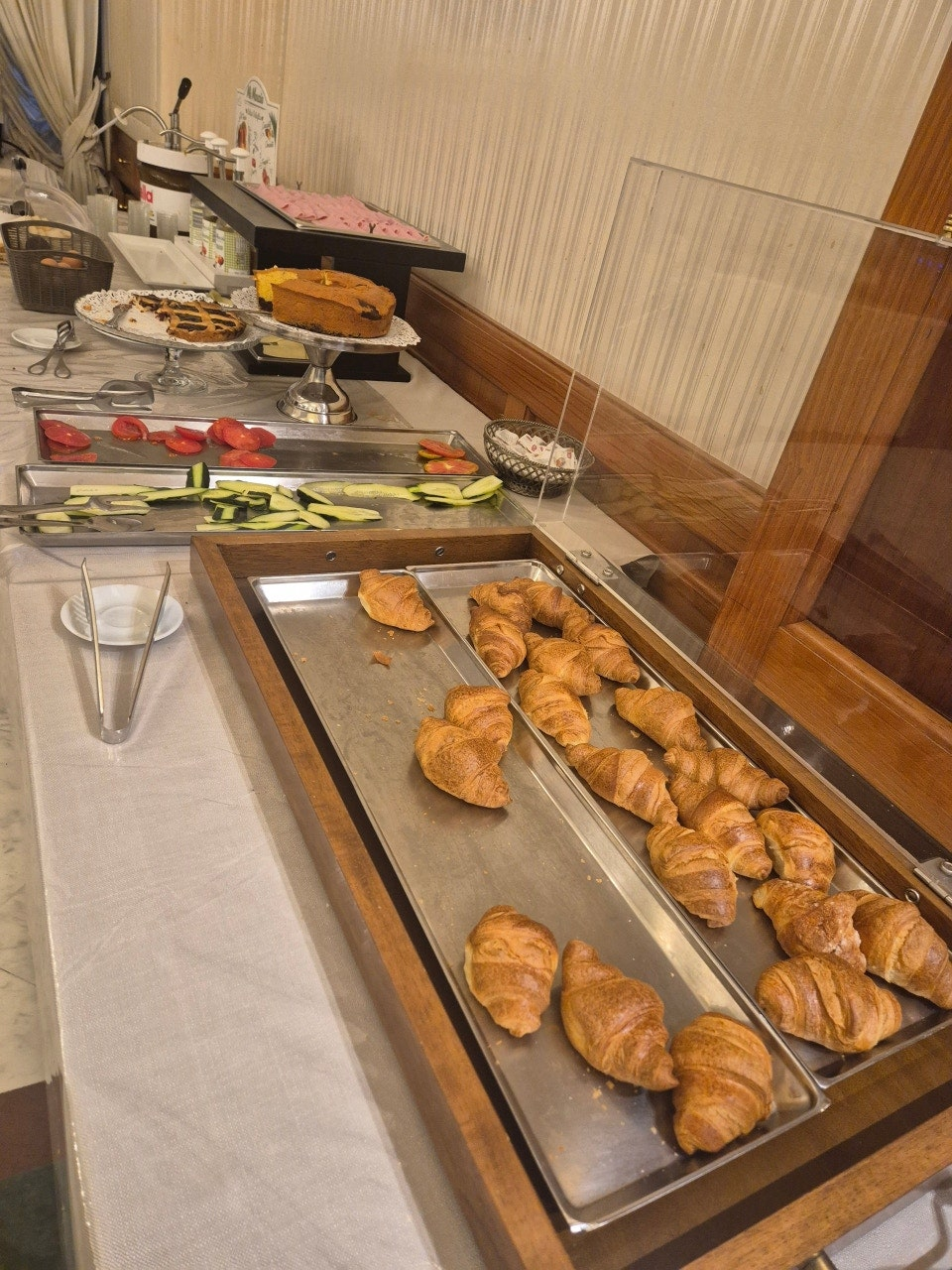 에리카 호텔 조식은 평범합니다. 피우지지역은 워낙 물이 유명해서 호텔에서 추천하는 물이 프런트에 있습니다. 마트에서 사고 싶지만 이미 다 팔렸더라고요. 물,물,물 물이 유명한 지역인 건 확실한 것 같아요. 마트에서 보이면 바로 구입하세요. 이른 아침 출발하는 팀이 우리 팀만 있는 것 같습니다. 저기 보이는 크로와상이 진짜 맛있어요. 아침마다 크로와상과 애플파이를 직접 만들어 줍니다. 일찍 가면 빵이 따뜻합니다. 한국에서 먹었던 크로와상은 잊어주세요. 정말 겉은 바삭하고 속은 부드럽습니다. 3일 내내 조식 메뉴는 변함이 없습니다. 그래도 맛있어요. 특히 저기 보이는 신선한 토마토가 다른 호텔과의 차이점입니다.