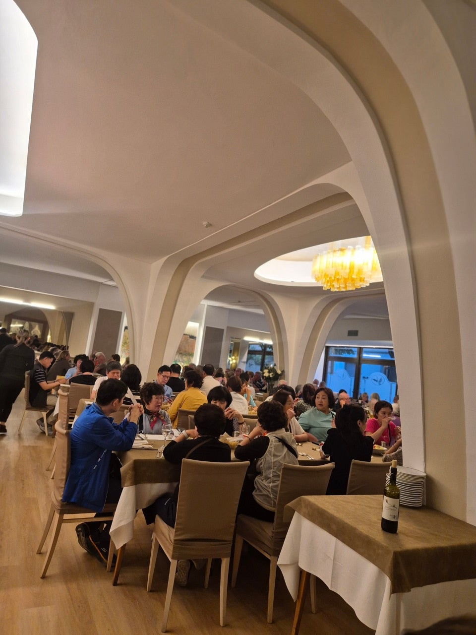 여행 4일 차 오늘은 차로 이동이 많은 날이라 많이 배가 고파요. 이탈리아식 저녁이라 큰 기대를 안 했는데 너무 맛있고 즐거운 시간이었습니다. 우리 말고도 1층 식당에는 다른 관광객들이 저녁을 먹기 위해서 가득했어요. 오늘 저녁은 이탈리아식 코스 요리로 나왔어요.